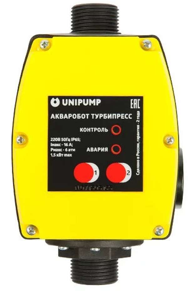 Блок Акваробот Турбипресс — предназначен для автоматического управления однофазными поверхностными и погружными насосами мощностью до 2,2 кВт.